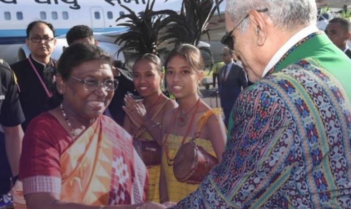 राष्ट्रपति द्रौपदी मुर्मू शनिवार को डिली, तिमोर-लेस्ते पहुंचीं, जो किसी भारतीय राष्ट्राध्यक्ष की दक्षिणपूर्व एशियाई राष्ट्र की पहली यात्रा है। यह यात्रा उनके तीन देशों के दौरे का अंतिम पड़ाव है, जिसमें न्यूजीलैंड और फिजी भी शामिल हैं। आगमन पर राष्ट्रपति मुर्मू का हवाई अड्डे पर तिमोर-लेस्ते के राष्ट्रपति जोस रामोस-होर्टा ने गर्मजोशी से स्वागत किया। हवाई अड्डे से ड्राइव के दौरान खुशमिजाज बच्चों ने उनका स्वागत किया, जिससे उनके आगमन में उत्सव का माहौल जुड़ गया।