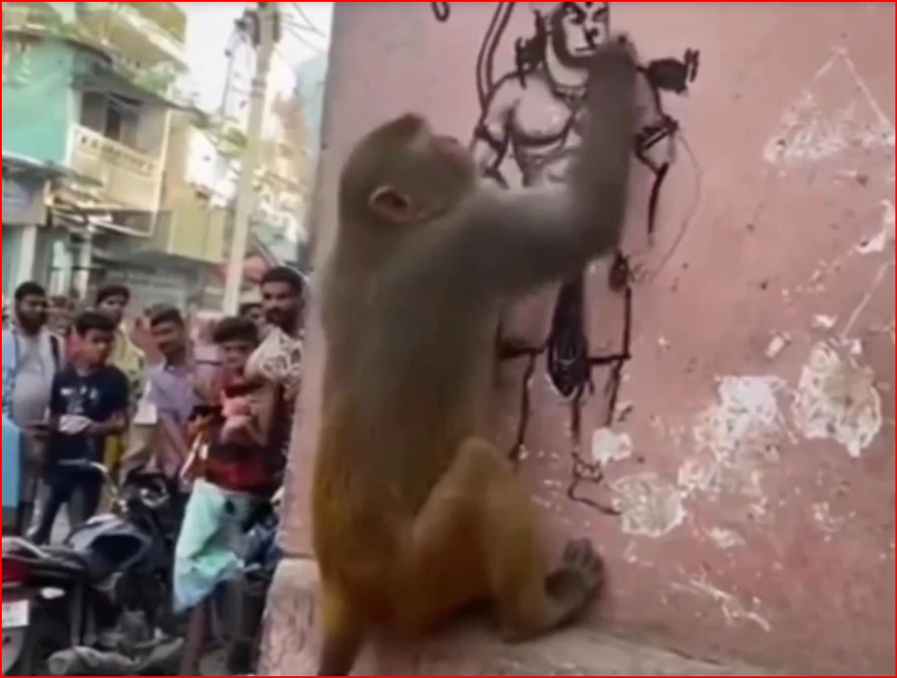 फैक्ट चेक: दीवार पर हनुमान जी का स्केच बनाते बंदर का ये वीडियो AI का कमाल है